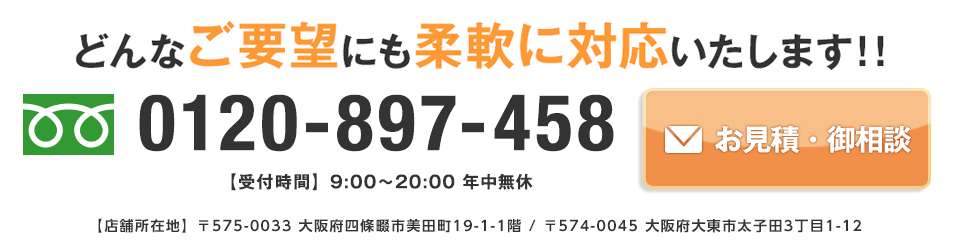 他社お見積りよりも大幅に下回った実例も多数の実績がありますので、お気軽にご相談ください。