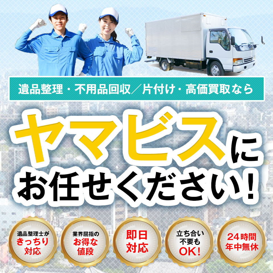 ヤマビスには、専門の遺品整理士が在籍し、即時対応も可能な万全体制を整えております。遺品整理や生前整理でお困りの際には、まず弊社にお問い合わせください!